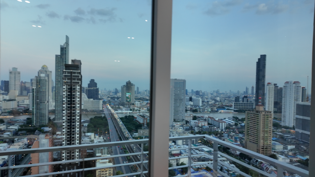 방콕의 에어비앤비 숙소에서 찍은 뷰입니다. 차오프라야 강이 보이는 이 숙소는 28박 29일에 $1895.00 이었습니다. 처음에 예약한 곳은 방하나 거실하나인 작은 아파트 여서 숙소비가 더 저렴했지만 아버지께서 함께 여행을 오셨기 때문에 방 2개짜리로 예약을 했는데 이 숙소가 너무 마음에 듭니다.