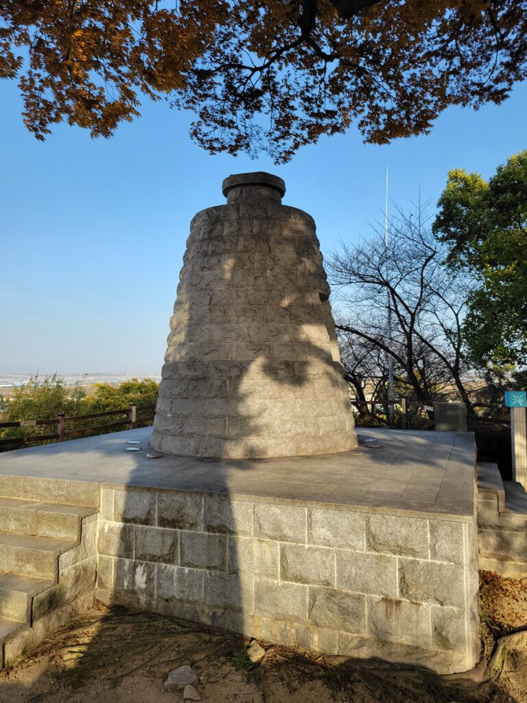 At the top is the beacon mound. It was part of an ancient Korean fire-signal system used to transmit important military and political information across the peninsula to the capital during the Joseon Dynasty.